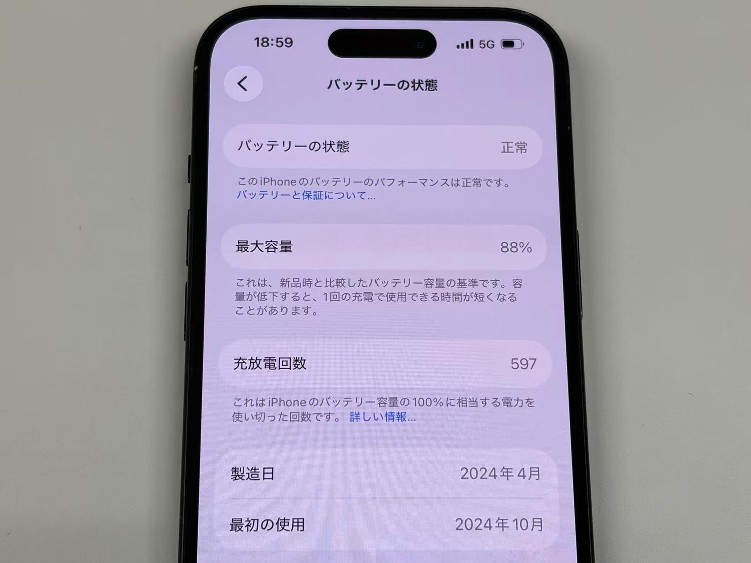 バッテリー最大容量表示:88%