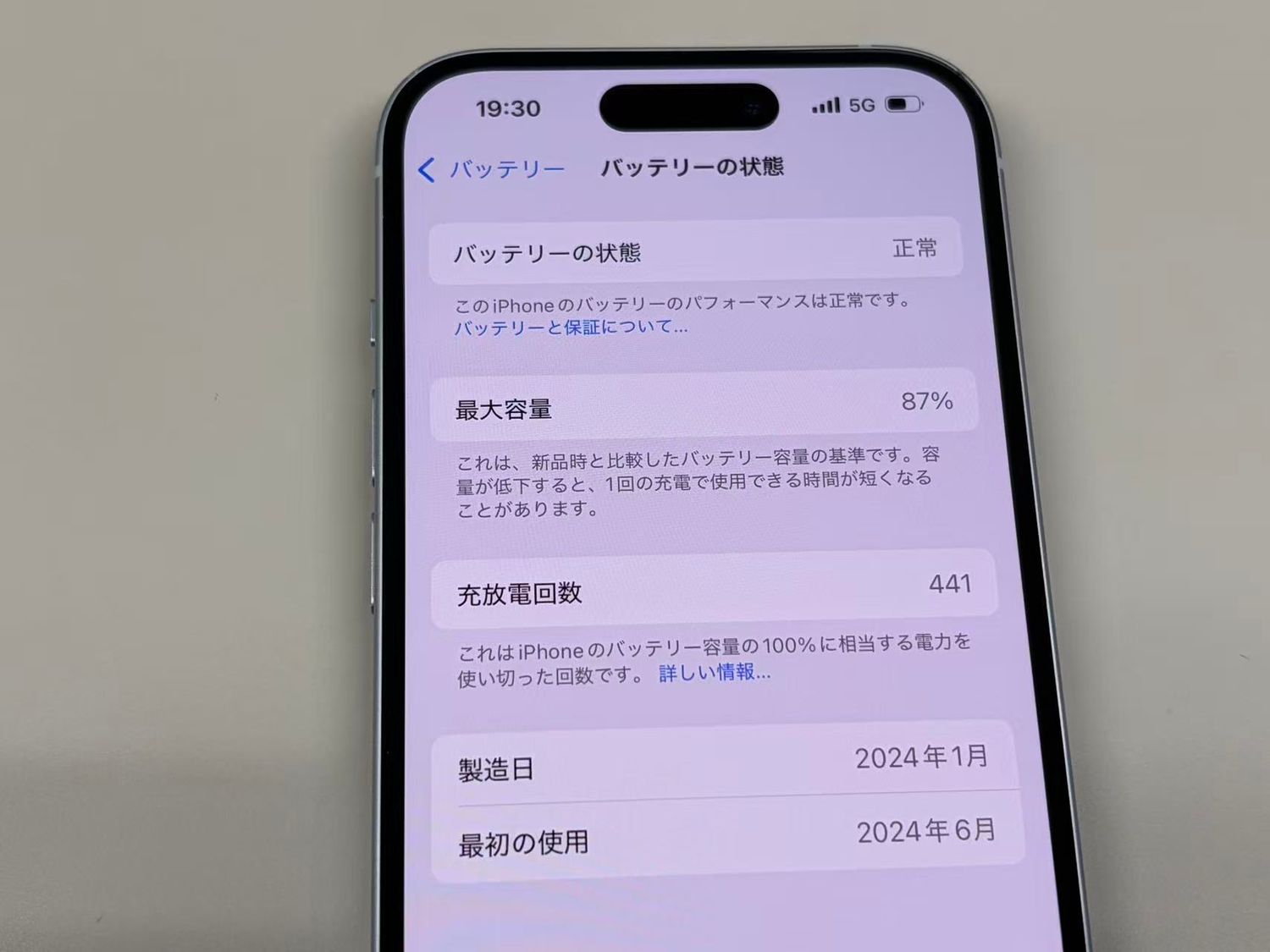バッテリー最大容量表示:87%