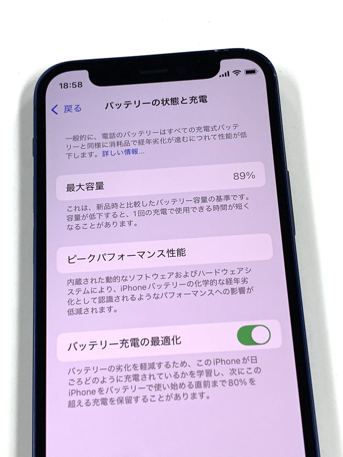 バッテリー最大容量表示:89%(Apple純正部品表示)