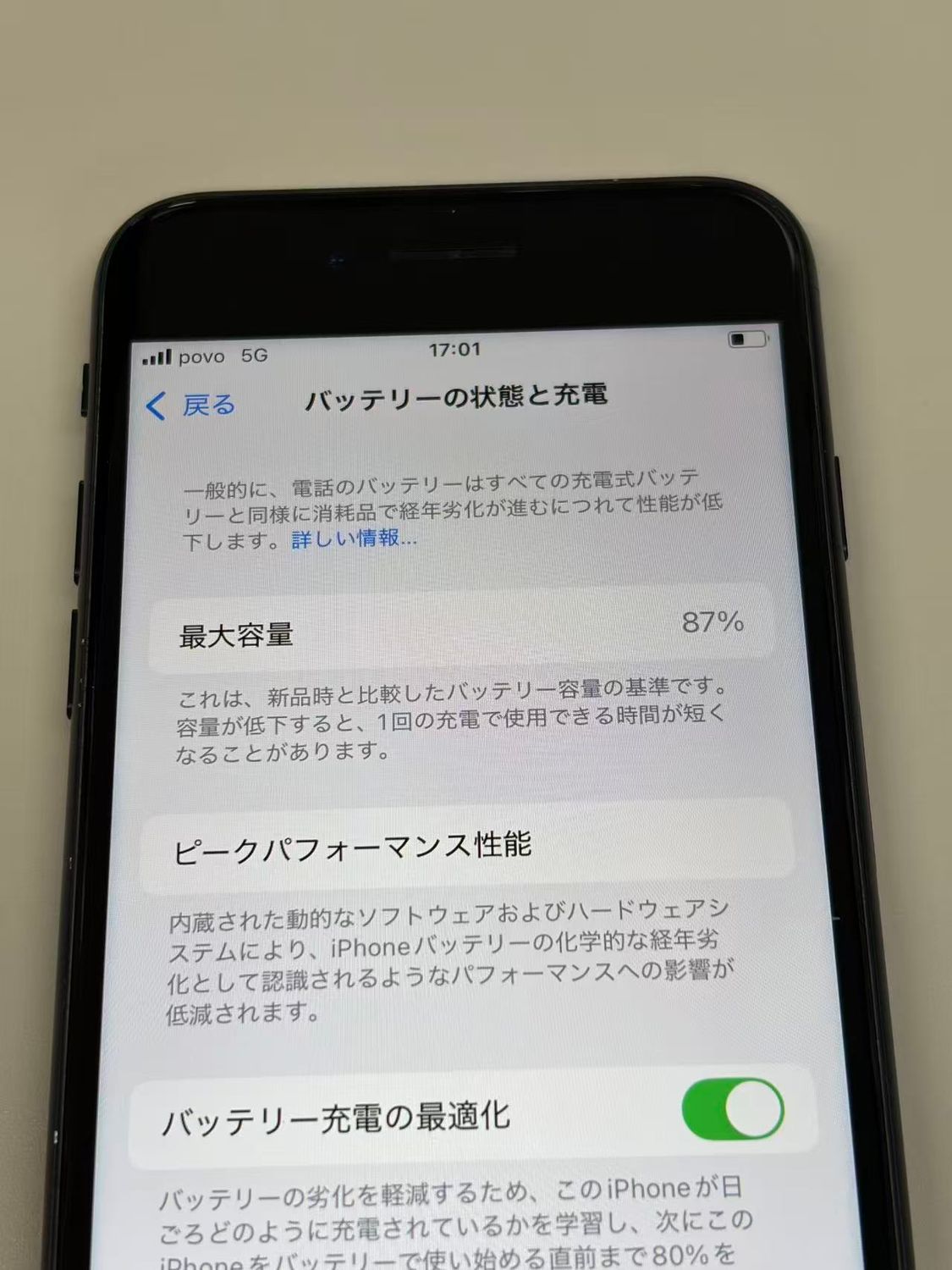 バッテリー最大容量表示:87%
