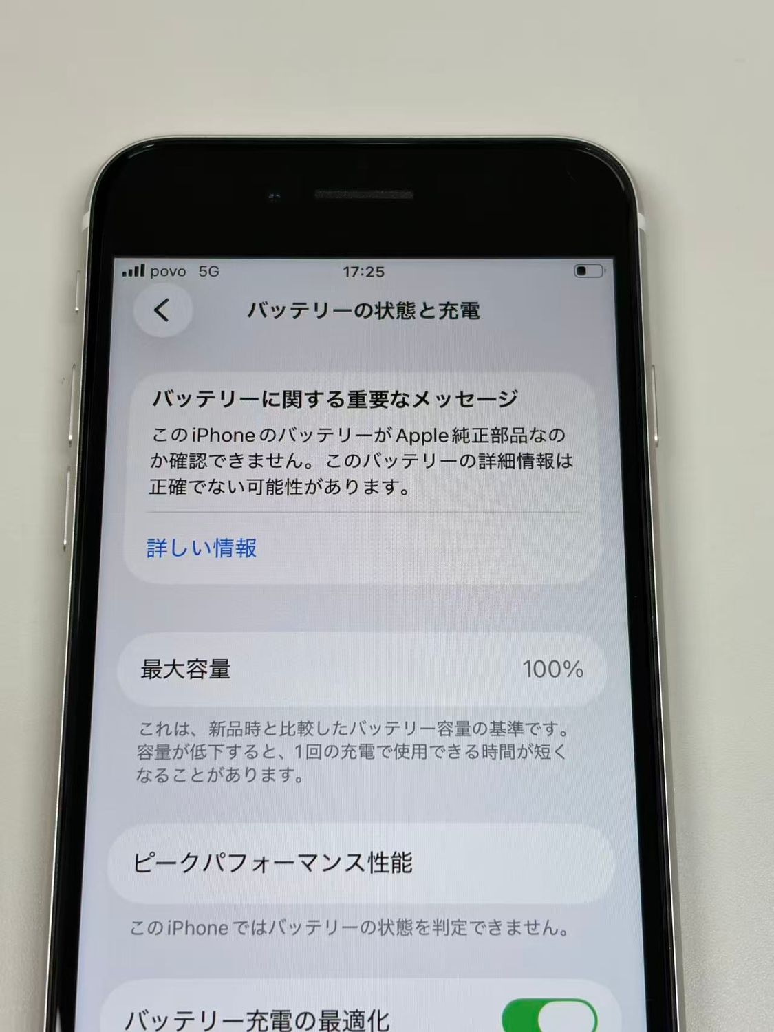バッテリー最大容量表示:100%