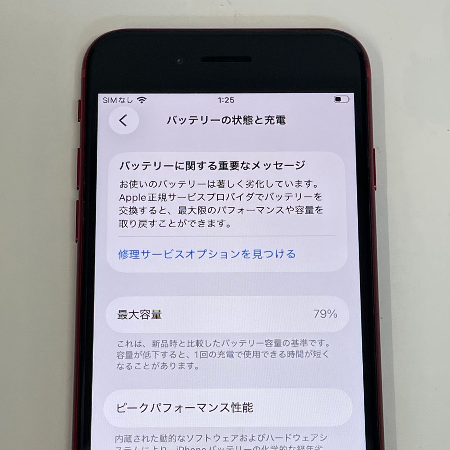 検品時のバッテリーの最大容量は79%、myauにてSIMロック解除済みです。