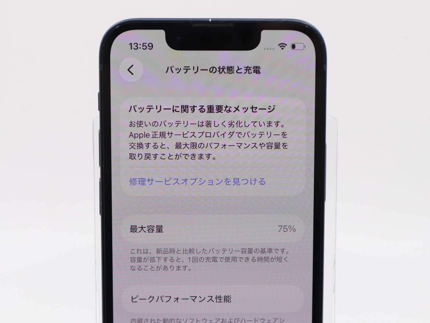 ■バッテリー状態:最大容量100%中75%