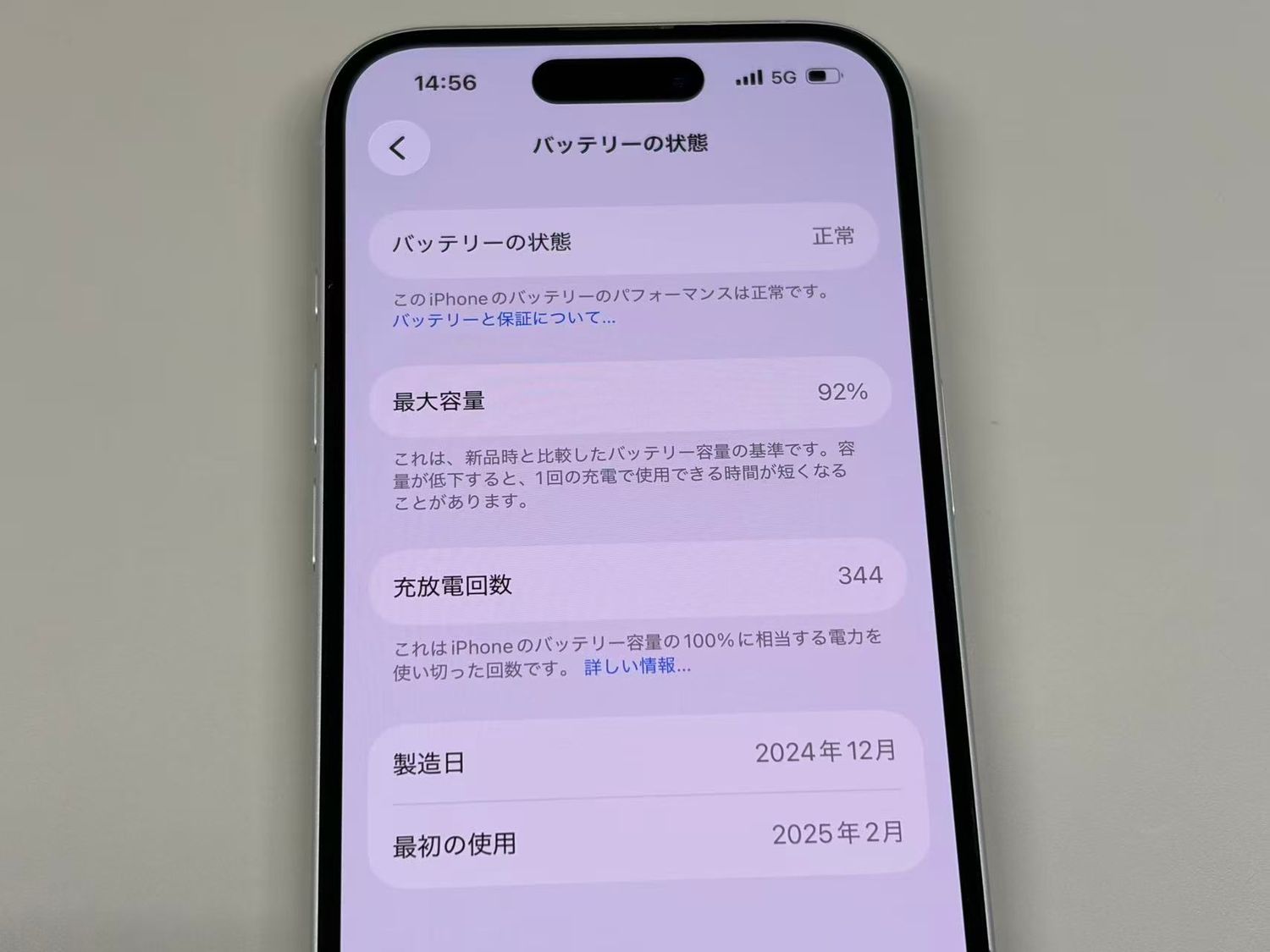 バッテリー最大容量表示:92%