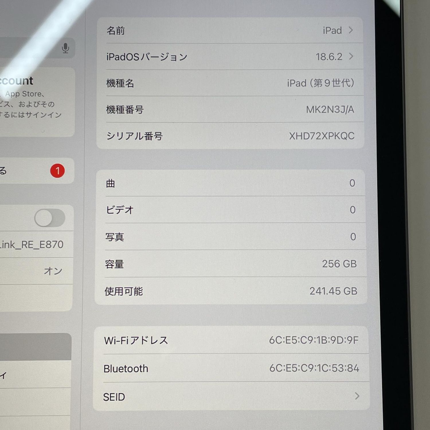 | 機種名 | iPad(第9世代) |